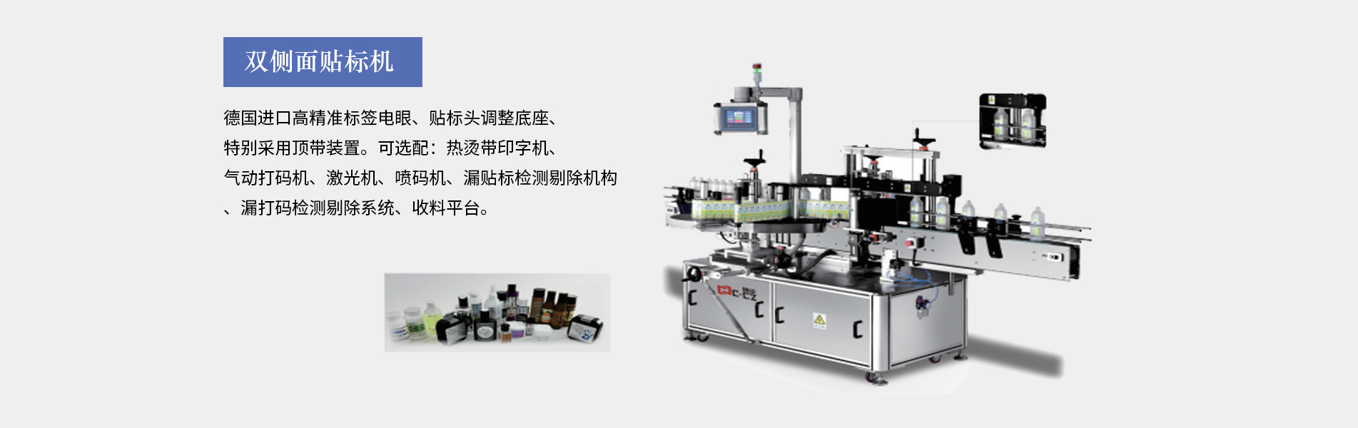 本公司生產的口服液貼標機適合細長形圓柱體瓶圓周表面的不干膠標簽自動貼標,口服液瓶等,采用彩色人機界面,離合器設計,使標簽張緊力更加穩定,便于提高貼標精度3、西門子PLC控制,德國、日本光眼,高精度步進,貼標速度可達30米/分鐘,可加裝色帶打碼機、或者熱轉印機??诜嘿N標機多為圓瓶貼標機適用于瓶身長,直徑的產品(玻璃塑料都可以,材質不限),同時可加工粉針劑瓶、采血管、水針劑瓶、眼藥水瓶、圓管等,專門針對...